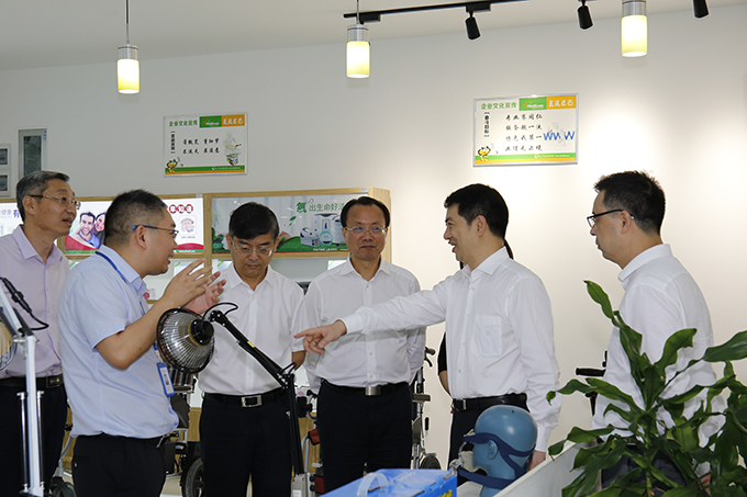 曲凤宏一行首先参观了医流巴巴健康体验馆,详细了解了医疗器械各品类在线上的销售情况。随后来到乐邮送第三方仓配基地,对第三方仓配各环节质量把控情况着重进行了了解。
