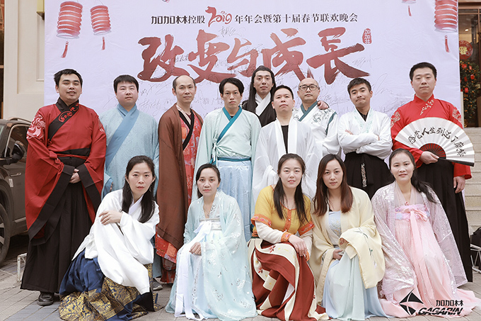 在动感的音乐里,绚丽的灯光下,欢乐祥和的氛围中,锦衣玉带风度翩翩的帅小伙、罗衫飘飘的俏佳人的叫好声一浪高过一浪,加加林控股第十届汉服主题春晚胜利闭幕。